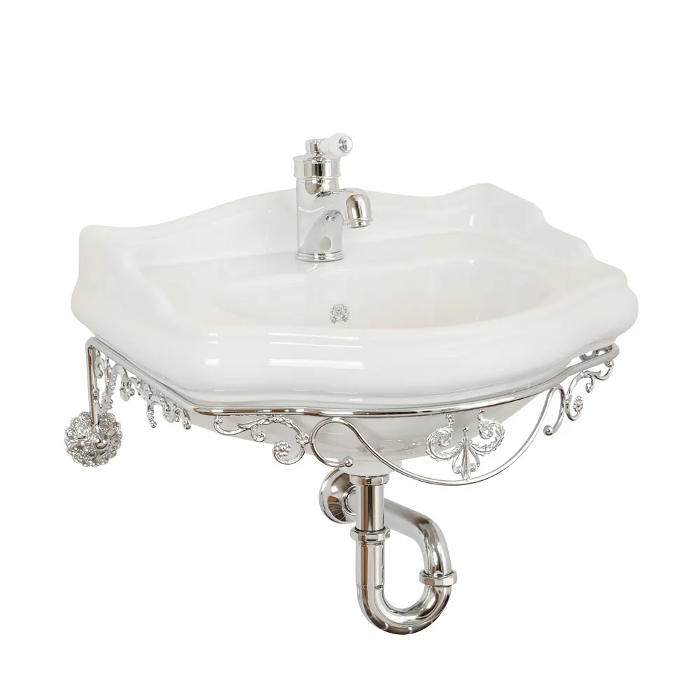 BELLA Комплект консоль подвесная 55 см. ажурная хром, раковина керамика белая арт-30346