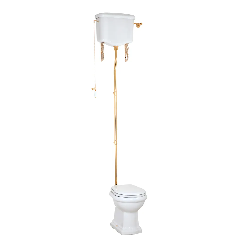 BELLA Комплект унитаз напольный выпуск в стену, бачок высокий с цепочкой золото, белый (БЕЗ КРЫШКИ) арт-31104
