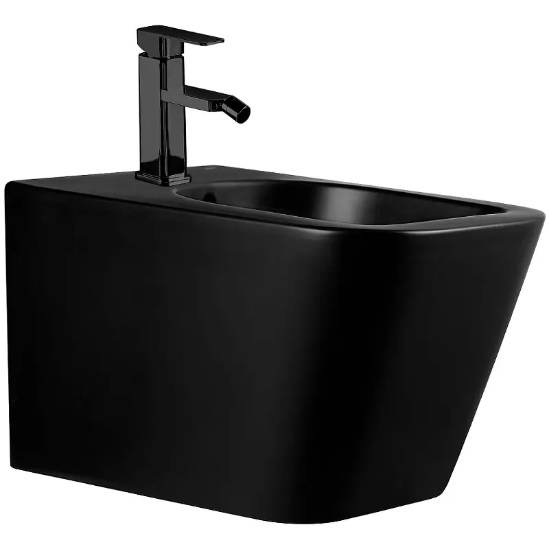 - Элегантный дизайн: Современное биде с квадратной формой и черным матовым покрытием привносит стиль и изысканность в интерьер.