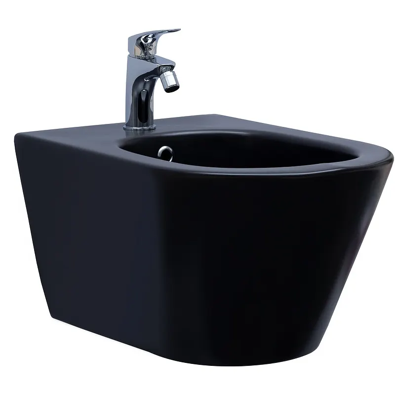 - Современный дизайн: Подвесное биде с овальной формой, выполненное в черном матовом цвете, станет стильным акцентом вашей ванной комнаты.