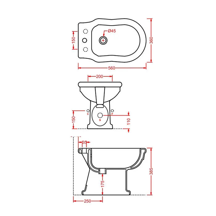 Биде Artceram Hermitage напольное с одним отверстием цвет черный HEB002 03 00 — фото 2, Биде напольные