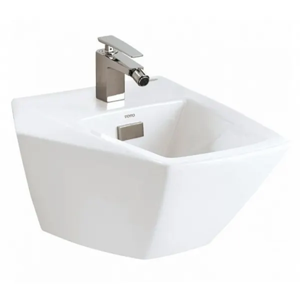 - Элегантный дизайн: квадратное биде с одним отверстием под смеситель от бренда Toto.