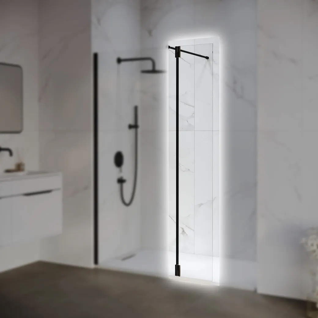 - Стильный дизайн: Прозрачное стекло и чёрный профиль создают современный и лаконичный вид, идеально подходящий для современных ванных комнат.
