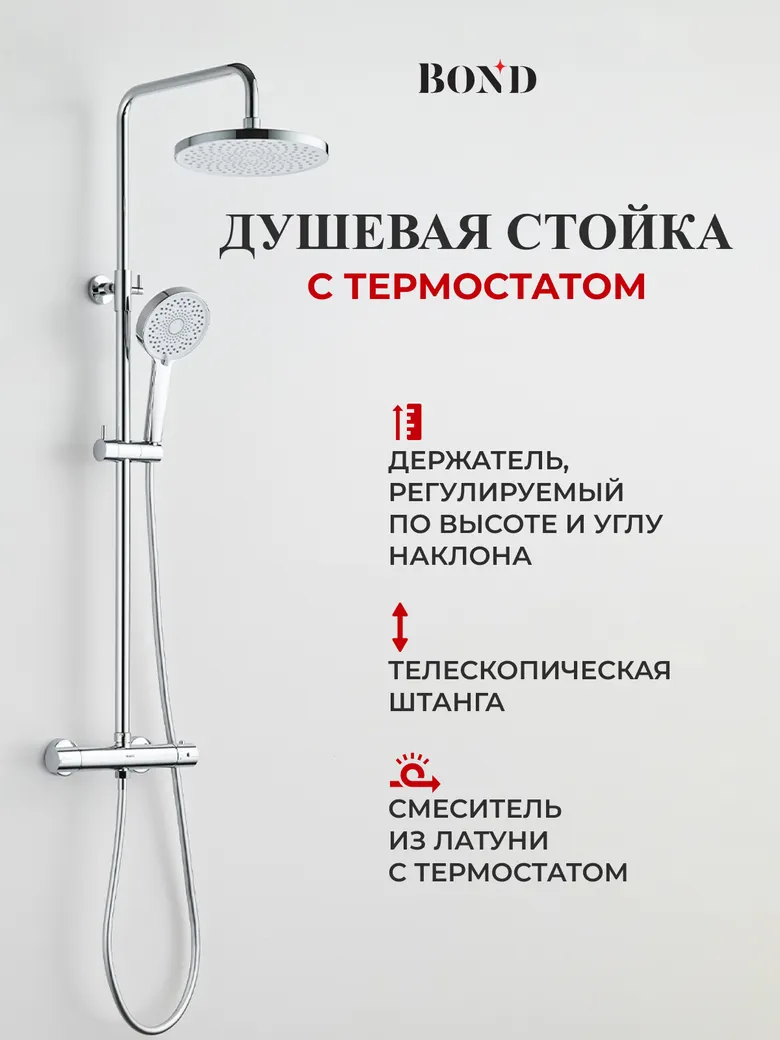 BOND Душевая стойка с термостатом и тропическим душем арт-B12-8200