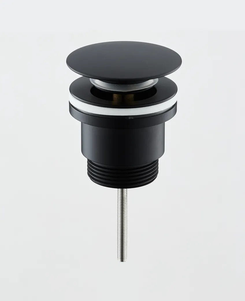 Универсальный черный матовый донный клапан для раковины предназначен для закрытия сливного отверстия и экономии воды. Он придает раковине красивый внешний вид и прост в обслуживании. Донный клапан черный BOND BV0388 с механизмом Push-Open открывается и закрывается простым нажатием пальца на крышку. Корпус изделия изготовлен из латуни, что гарантирует его высокое качество и длительный срок службы. Подходит ко всем раковинам BOND с переливом и без перелива, а также всем другим раковинам, имеющим стандартное сливное отверстие.