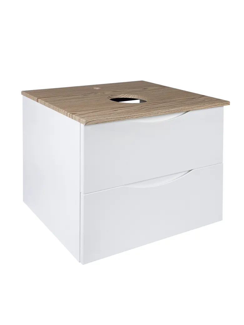 Тумба подвесная со столешницей BOND Cube T99605 без раковины. Материал: фасад МДФ с интегрированными ручками, покрыт высококачественной премиальной краской (эмалью), цвет - белый матовый. Корпус: МДФ, эмаль, цвет - белый матовый. Столешница: МДФ, пленка под дерево. Направляющие скрытого монтажа полного выдвижения с доводчиками. Внутри ящики ЛДСП серого цвета. Без раковины.