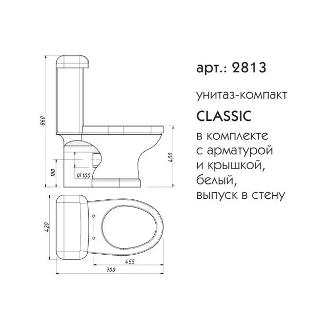 CLASSIC Унитаз - компакт 690х430х850 2813 — фото 1, Унитазы