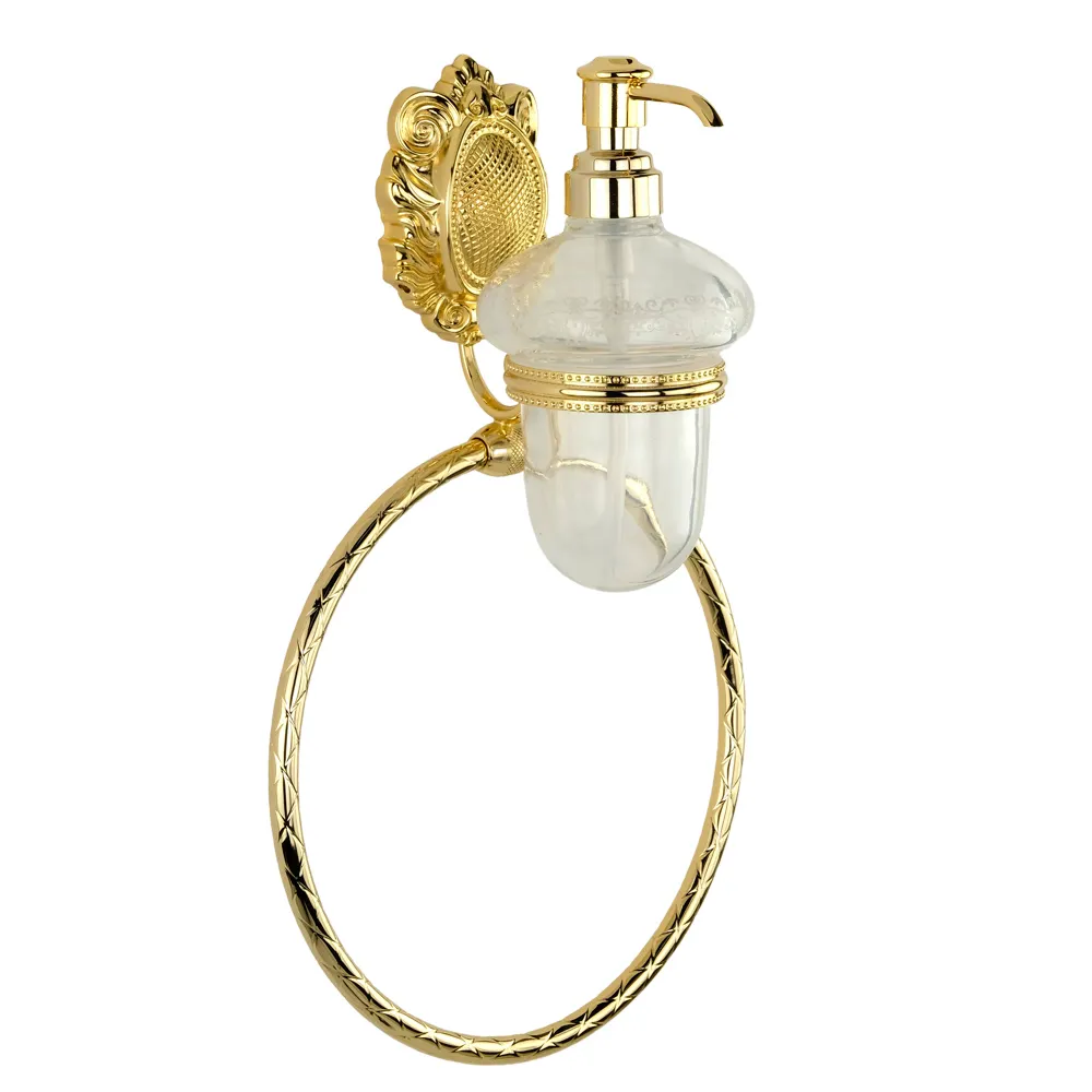 CLEOPATRA Дозатор жидкого мыла настенный с кольцом, стекло прозрачное с матовым декором/золото арт-16683