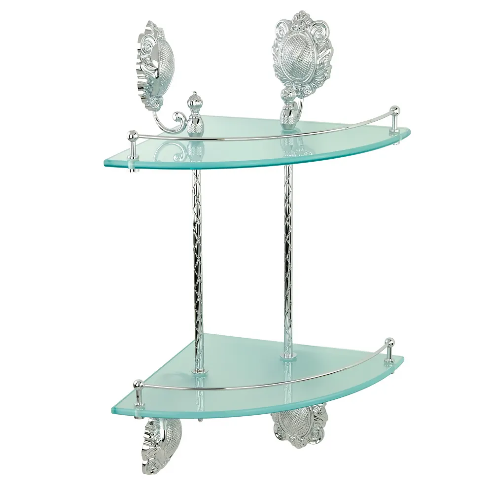 Полка с галереей угловая двойная коллекции CLEOPATRA бренда MIGLIORE — это функциональный аксессуар для ванной комнаты в классическом стиле. На ней можно разместить все необходимые косметические средства, которые будут всегда у вас под рукой. Ограничительпо переднему краю полки не позволит упасть тюбикам и предметам. Стекло легко чистится тряпочкой и/или средством для чистки стекол.