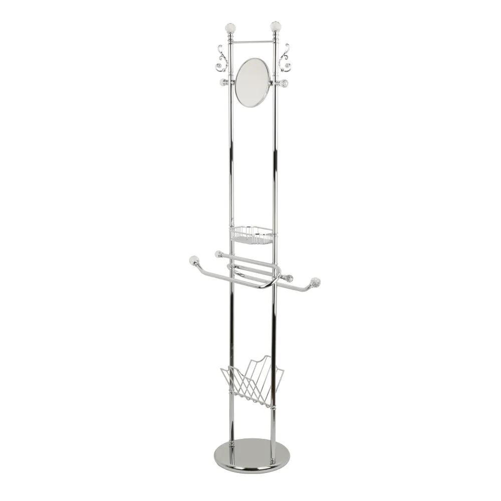 Стойка высокая для халотов и полотенец коллекции CRISTALIA бренда MIGLIORE — это красивый и многофункциональный аксессуар для ванной комнаты. На стойке расположены крючки, оптическое двухсторонее зеркало, решетка-корзинка, полотенцедержатели, и держатель для планшета/журналов. Аксессуар богато украшен кристаллами Сваровски.