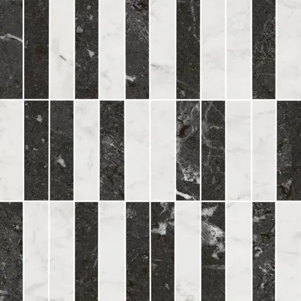 Декор Тубкаль мозаичный микс чёрный белый глянцевый обрезной 30х30 (7шт) арт-KMD2MSA003BR