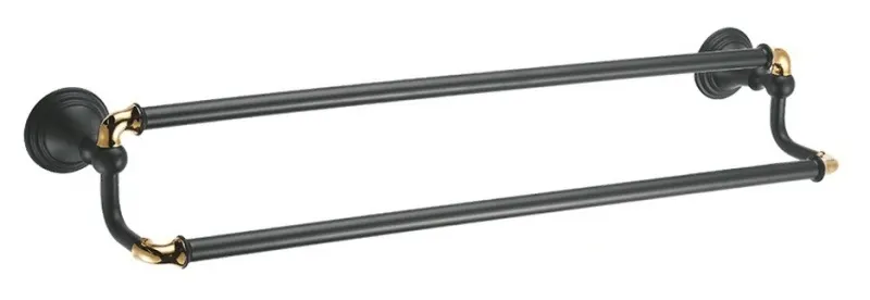 Полотенцедержатель Fixsen Luksor FX-71602B двойной в ванную комнату.Полотенцедержатель выполнен в элегантном дизайне, который будет органично смотреться в интерьере ванной в современным стиле. Использованы материалы: сплав металлов, латунь с Черным покрытием и деталями в цвете Золото. Размеры: 7,5x62x6 см. Крепление на стену шурупами (в комплекте поставки). Блистерная упаковка.