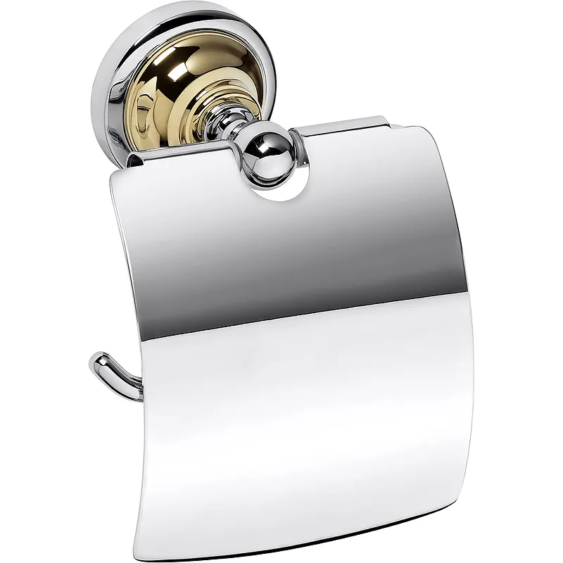 Держатель туалетной бумаги Bemeta Retro Gold and Сhrom 144212018 с крышкой.Характеристики: Цвет: золото, хром. Материал: латунь. Покрытие: глянцевое. Монтаж: подвесной. Габариты (ШxВxД): 140 x 150 x 100 мм. В комплекте поставки: Держатель туалетной бумаги.
