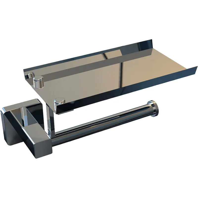Держатель туалетной бумаги CeramaLux Quadro 61907B с полкой.Характеристики: Цвет: хром. Материал: латунь. Размеры (ШхВхД): 212х92х90 мм. Монтаж: на стену. В комплекте поставки: Держатель туалетной бумаги.