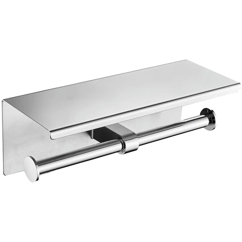 Держатель туалетной бумаги D-Lin D201506-2 двойной с полкой.Характеристики: Цвет: хром. Материал: нержавеющая сталь. Размеры (ШхВхД): 278х100х98 мм. Метод крепления: шурупы. Монтаж: настенный. В комплекте поставки: Держатель туалетной бумаги. Набор креплений.
