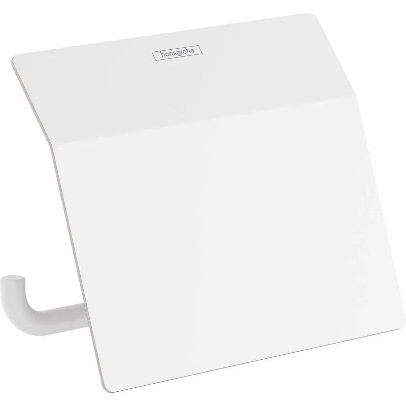 Держатель туалетной бумаги Hansgrohe AddStoris 41753700 с крышкой.Характеристики: Цвет: белый матовый. Материал: латунь. Диаметр между отверстиями: 26 см. Диаметр отверстия: 6 мм. Скрытое крепление. Монтаж: настенный. В комплекте поставки: держатель туалетной бумаги.