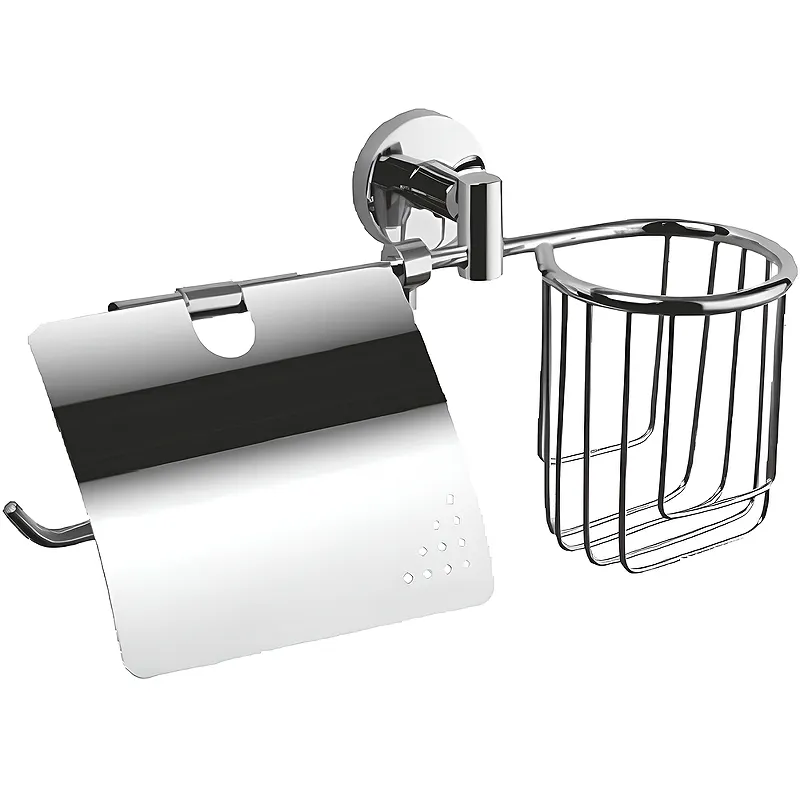 Держатель туалетной бумаги и освежителя воздуха Haiba HB1703-1 с крышкой.Характеристики: Цвет: хром. Материал: металл. Размеры (ШхВхД): 25,5х13,5х12,5 см. Метод крепления: саморезы. Монтаж: настенный, на одно отверстие. В комплекте поставки: держатель туалетной бумаги и освежителя воздуха.