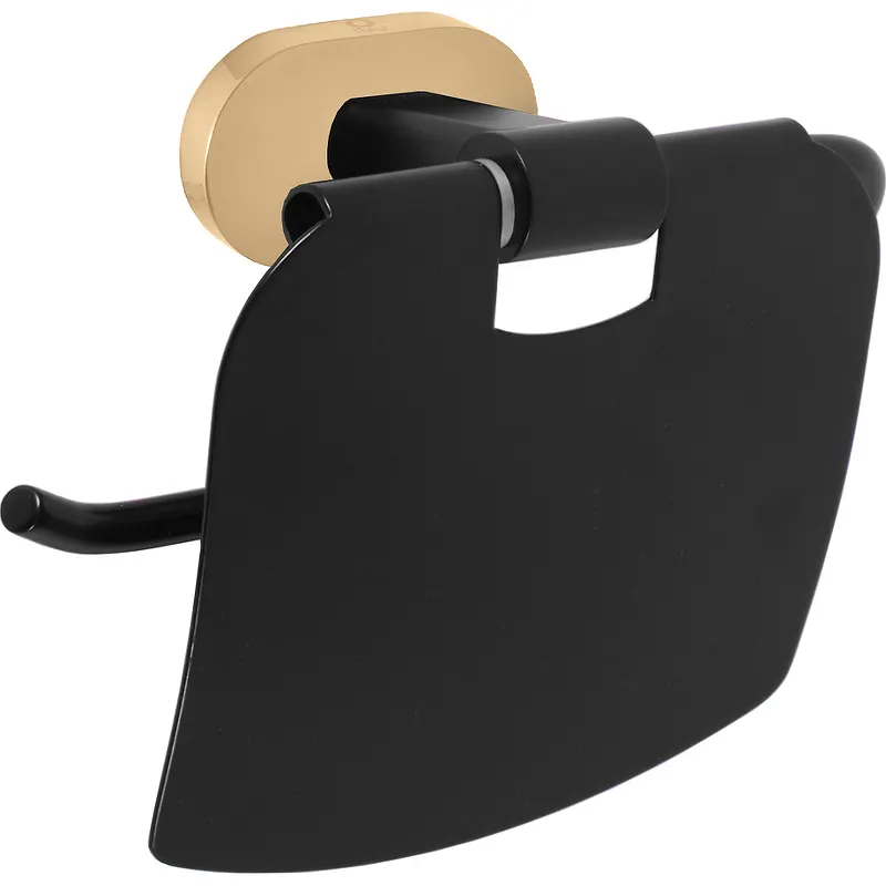 Держатель туалетной бумаги Rav Slezak Yukon YUA0400CMATZ с крышкой.Характеристики: Цвет: черный матовый, золото. Материал: латунь. Поверхность: матовая, глянцевая. Форма розетки: овальная. Монтаж: настенный. Размер (ШхВхГ): 136х119,5х59,8 мм. В комплекте поставки: Держатель туалетной бумаги.