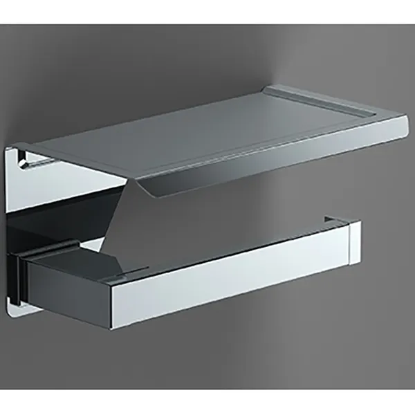 Держатель туалетной бумаги с полочкой Sonia S-Cube 173938. Крепление к стене спроектировано таким образом, чтобы крепежные элементы были скрыты. Цвет: хром. Материал: латунь. Крепление: на стену. В комплекте поставки: держатель туалетной бумаги, крепления.