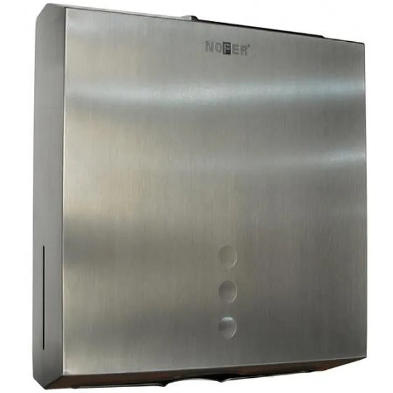 Диспенсер для бумажных полотенец Nofer 04006.S.Характеристики: Материал: нержавеющая сталь. Цвет: матовая нержавеющая сталь. Размеры (ШхВхД): 28х30х10 см. Толщина металла: 1 мм. Заправка: фронтальная. Подходит для сложенных или обжатых полотенец. Вместимость: 450 полотенец. Монтаж: настенный. Прочность и стойкость к коррозии. В комплекте поставки: Диспенсер для бумажных полотенец.