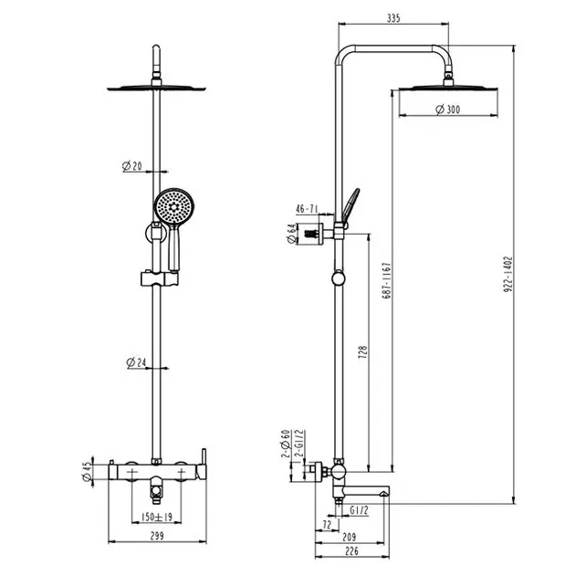 DON комплект для ванны-смеситель с колонной, тропич/ручн.душ (мат.золото) 53-315-brg — фото 2, Готовые комплекты для ванной комнаты