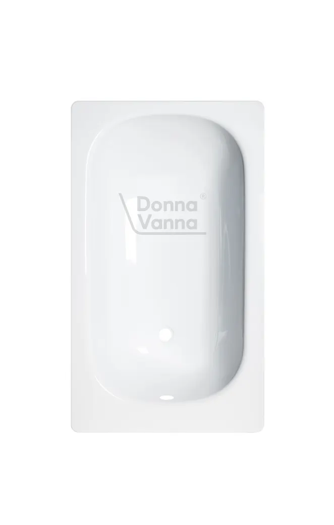 Ванна из стального листа с гладкой стекловидной поверхностью, прямоугольной формы, пристенная, ориентация универсальная. В комплекте с ванной поставляется опорная подставка из стали.