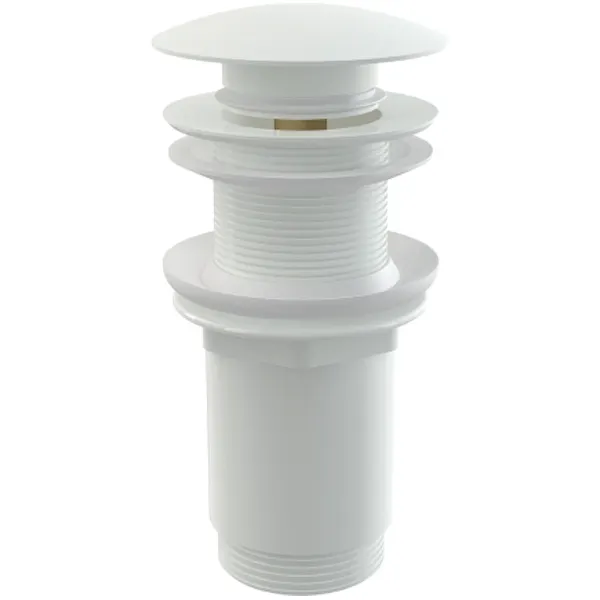 Донный клапан клик-клак Alcaplast A395B цельнометаллический с большой белой заглушкой.Технические данные:Цвет: белый.Материал: латунь.Обладает высокой устойчивостью к механическим повреждениям.Длительный срок службы механизма клик-клак.Для пластиковых и стеклянных раковин.Диаметр резьбы: 5/4 дюйма.В комплекте поставки:донный клапан;силиконовая прокладка: 2 шт.