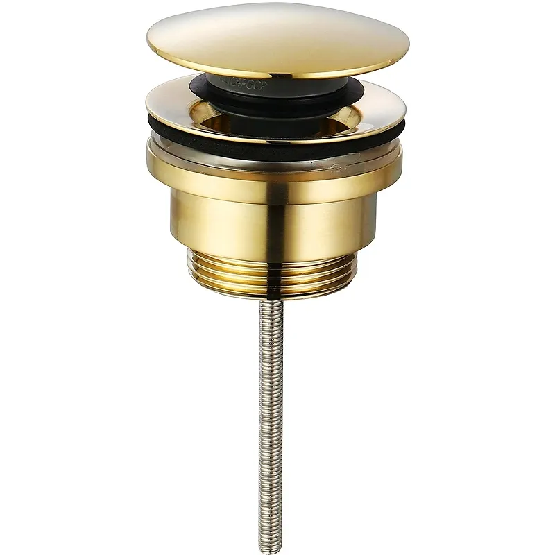 Донный клапан AQUAme AQM7003GG click-clack.Характеристики: Цвет: золото глянцевое. Материал: латунь. Габариты (ШхВхД): 63x116х63 мм. Система click-clack. Пропускная способность: 32 л/мин. Подключение к сифону 32 мм. Диаметр слива: 40 мм. Стандарт подводки: G 1 1/4. Форма: круглая. В комплекте поставки: Донный клапан.