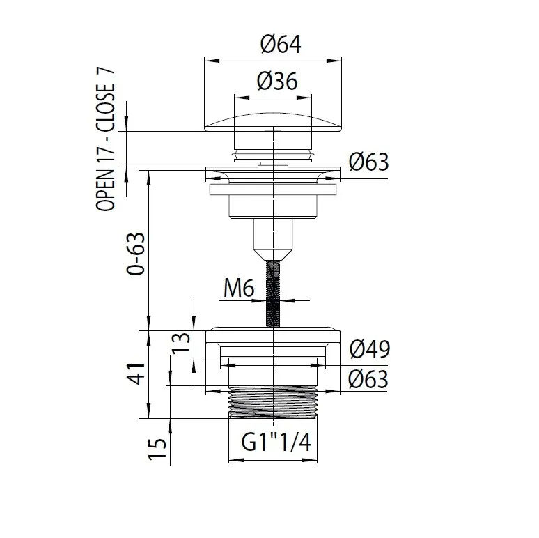 Донный клапан Bossini Teo Click-Clack без перелива 1” 1⁄4 цвет черный матовый арт-Z00700.073