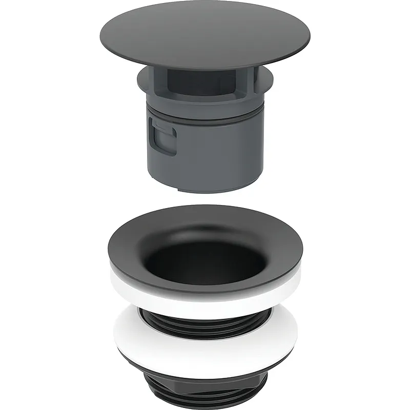 Цвет: черный матовый. Материал: латунь. Крышка клапана пластмассовая. Со встроенным волосоуловителем. Для умывальников без перелива. Для биде без видимого перелива. Комплект поставки: Донный клапан. Сеточный клапан. Уплотнения.