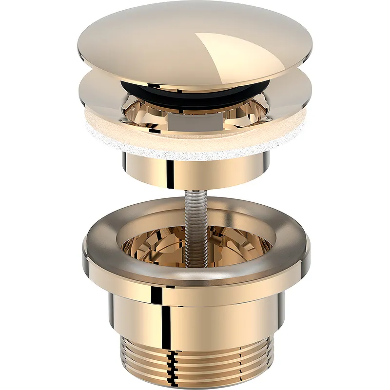 - Эстетичный дизайн: Донный клапан в золотом цвете придаст вашей ванной комнате роскошный вид, подчеркнув элегантность интерьера.