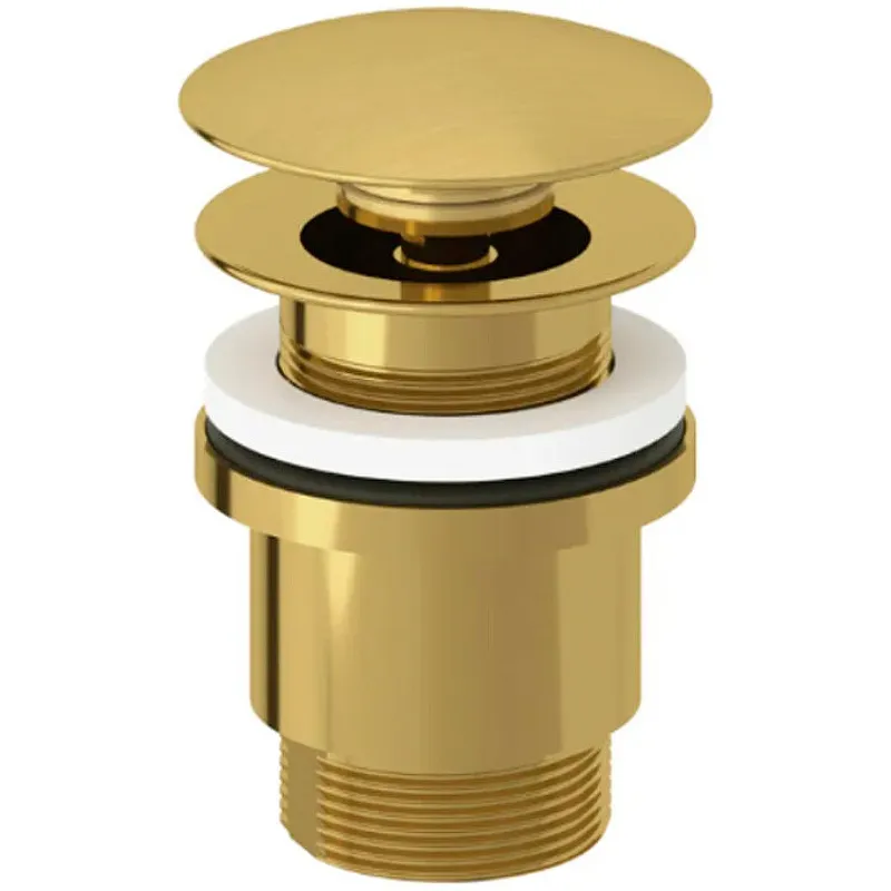 Донный клапан Kludi 10426N0-00 click-clack с переливом. Характеристики: Цвет: золото брашированное. Материал: металл, пластик. Система click-clack. С переливом. Стандарт подключения: G 1 1/4. Форма: круглая. В комплекте поставки: Донный клапан.