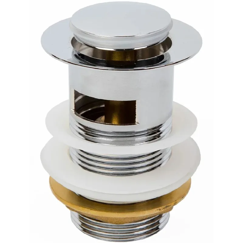 Донный клапан Laguraty T962 click-clack.Характеристики: Цвет: хром. Материал: латунь. Для раковин с переливом. Стандарт подводки: G 1 1/4. Система Click-Clack. Форма: круглая. В комплекте поставки: Донный клапан.