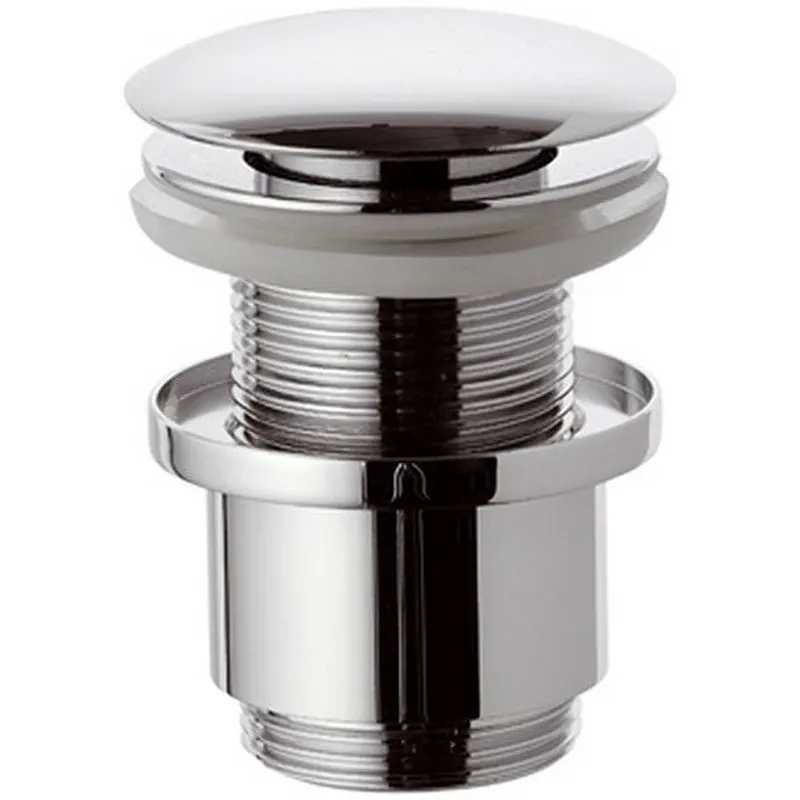 Донный клапан Remer 904CC2114 click-clack.Характеристики: Цвет: хром. Материал: латунь. Диаметр подключения сифона: G 1 1/4. Форма декоративной крышки: круглая. Запорный механизм: click-clack. Максимальная монтажная толщина раковины: 50 мм. В комплекте поставки: Донный клапан.