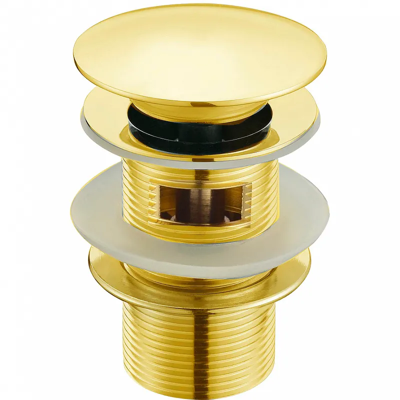 Донный клапан SantiLine SL-107 click-clack.Характеристики: Материал: латунь. Цвет: золото. Диаметр слива: 4,5 см. Диаметр подключения: 3,2 см. Направление выпуска: прямое. Назначение: для раковин без перелива, для биде. В комплекте поставки: Донный клапан.