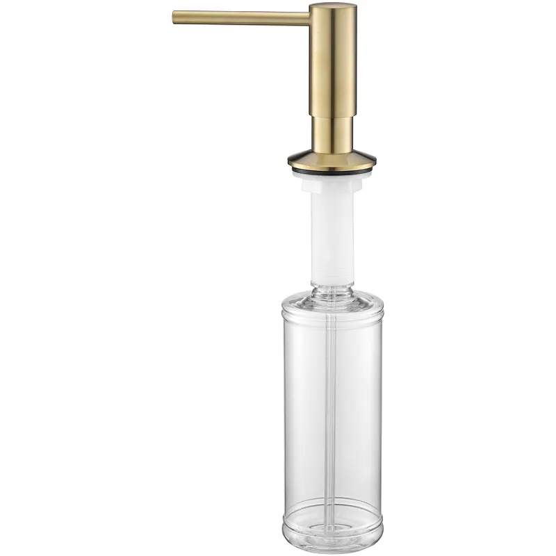 - Долговечность: Латунь и пластик гарантируют длительный срок службы, сохраняя внешний вид и функциональность дозатора для моющего средства.