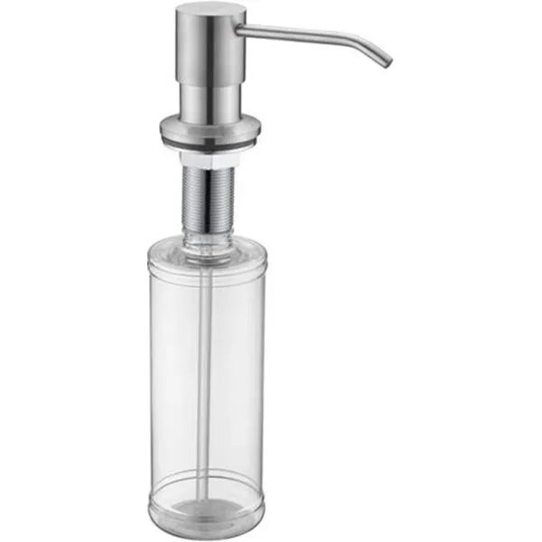 Встраиваемый дозатор для моющего средства Paulmark Rein D002-NI.Технические данные: Цвет: никель. Материалы: латунь, пластик. Монтаж: встраиваемый. Объем: 350 мл. В комплекте поставки: дозатор.