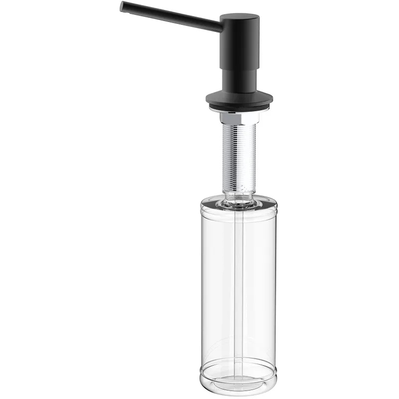 Дозатор для моющего средства Raglo R720.01.06.Характеристики: Цвет: черный матовый. Материал дозатора: латунь. Материал емкости для моющего средства: пластик. Объем емкости: 350 мл. Тип управления: нажимное. Монтаж: встраиваемый. В комплекте поставки: Дозатор для моющего средства.