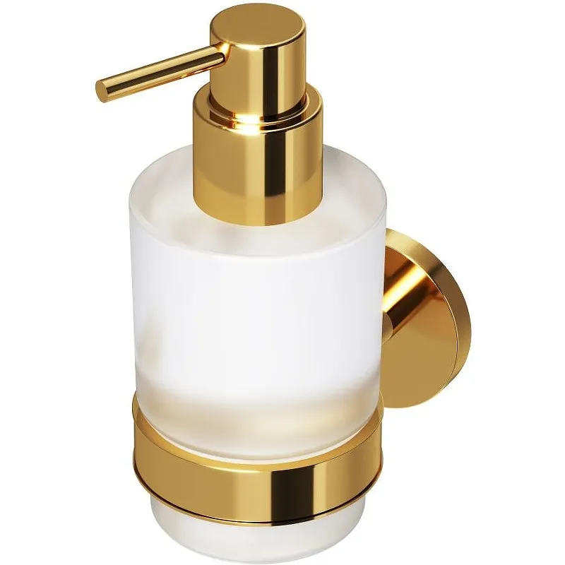 Дозатор для жидкого мыла AM.PM X-Joy A85A36999.Самая провокационная коллекция сантехники – X-Joy не была полностью наполненной без невероятных аксессуаров для ванной комнаты. Дизайн аксессуаров X-Joy принадлежит авторству собственной дизайн-студии бренда AM.PM из Германии.Настоящее произведение ювелирного искусства в вашей ванной комнате: корпус равномерно покрыт тончайшим слоем 24-каратного золота. Нанесение драгоценного финишного слоя выполнено методом вакуумного напыления, в процессе которого микрочастицы золота образуют стойкое соединений с металлической основой. Диспенсер для жидкого мыла X-Joy – незаменимый аксессуар для вашей ванной. Подвесная установка делает этот продукт невероятно удобным для использования. Продукт выполнен из сплава металлов высочайшего качества с блестящим золотым покрытием устойчивым к механическим повреждениям и матового стекла. Даже через 10 лет аксессуары X-Joy будут выглядеть как новые.Характеристики: Цвет: золото. Материал: металл, матовое стекло. Габариты (ШхВхД): 68х151х108 мм. Метод крепления: шурупы. Монтаж: настенный. В комплекте поставки: Дозатор для жидкого мыла с настенным держателем. Крепления. Инструкция.