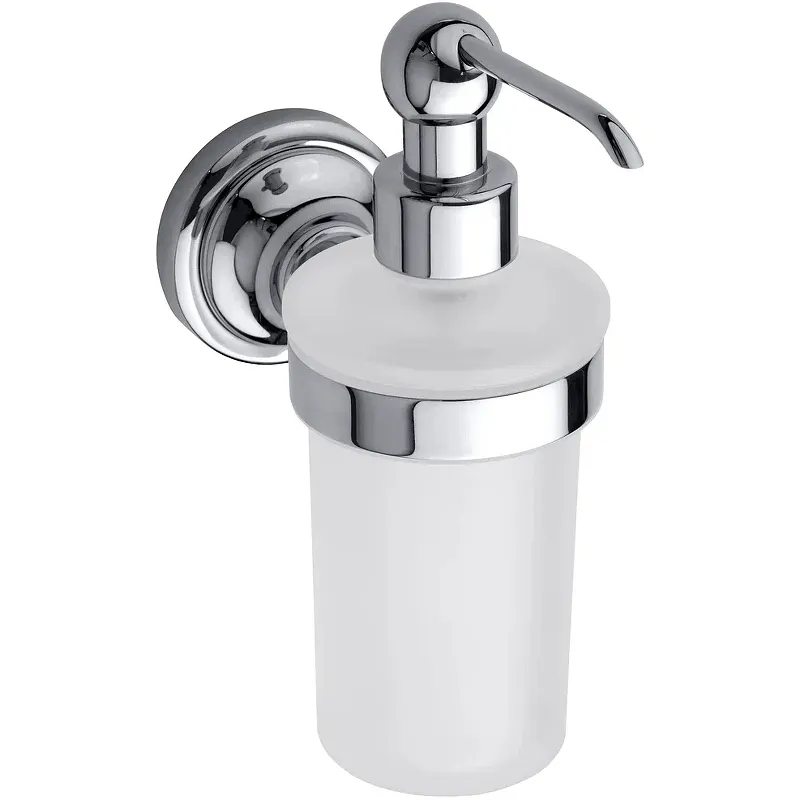 Дозатор для жидкого мыла Bemeta Retro chrom 144309012.Характеристики: Цвет держателя: хром. Материал держателя: латунь. Поверхность держателя: глянцевая. Материал дозатора: стекло. Поверхность дозатора: матовая. Размер (ШхВхД): 80х190х120 мм. Объем: 230 мл. Монтаж: подвесной на стену. В комплекте поставки: Дозатор. Держатель. Комплект крепежа.