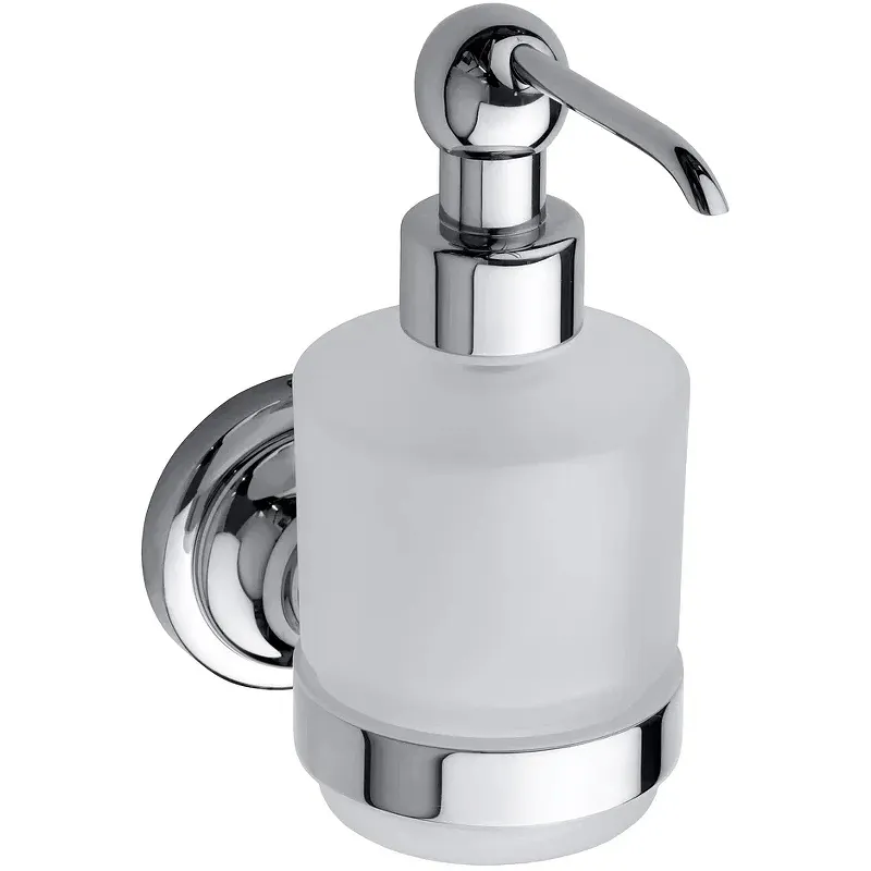 Дозатор для жидкого мыла Bemeta Retro chrom 144309102.Характеристики: Цвет держателя: хром. Материал держателя: латунь. Поверхность держателя: глянцевая. Материал дозатора: стекло. Поверхность дозатора: матовая. Размер (ШхВхД): 75х150х120 мм. Объем: 200 мл. Монтаж: подвесной на стену. В комплекте поставки: Дозатор. Держатель. Комплект крепежа.