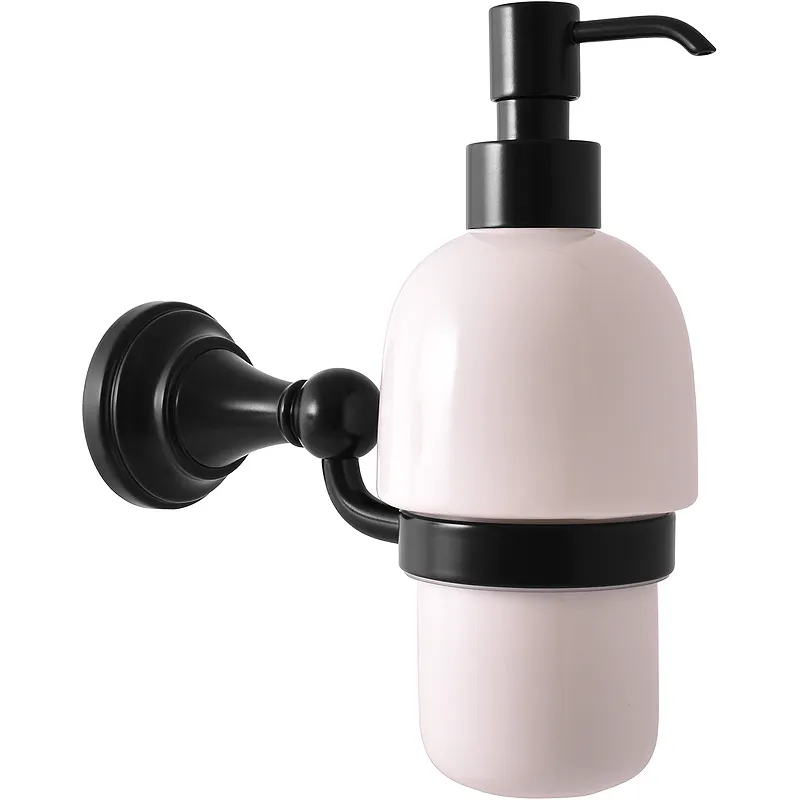 Дозатор для жидкого мыла Rav Slezak Morava MKA0303CMAT.Характеристики: Цвет: черный матовый. Материал: латунь, фаянс. Поверхность: матовая. Форма розетки: круглая. Объем: 200 мл. Дозировка: 2 мл. Монтаж: настенный. Размер (ШхВхГ): 72х151х181 мм. В комплекте поставки: Дозатор для жидкого мыла. Настенный держатель.