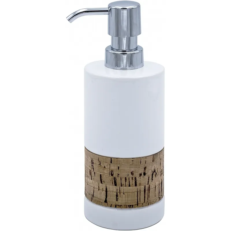 Дозатор для жидкого мыла Ridder Corky 2124501 Белый станет стильным и функциональным дополнением вашей ванной комнаты. Этот настольный дозатор выполнен из прочной керамики и пробки, что придаёт ему современный вид и долговечность. Объем в 300 мл позволяет удобно использовать его в повседневной жизни, обеспечивая достаточное количество средства для каждого использования.