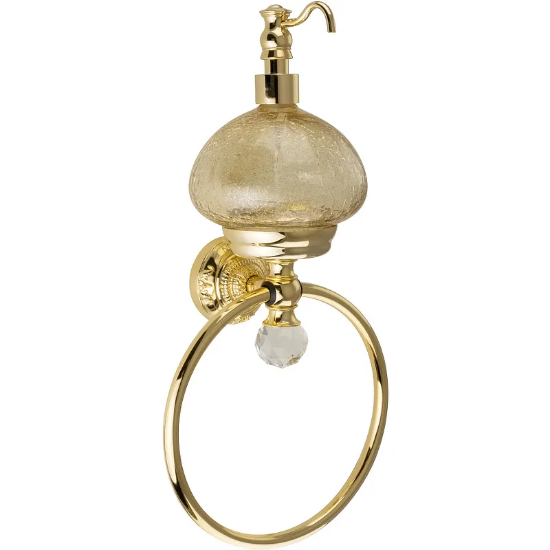 Дозатор для жидкого мыла с кольцом для полотенец Migliore Cristalia 16832 Золото с кристаллом Swarovski