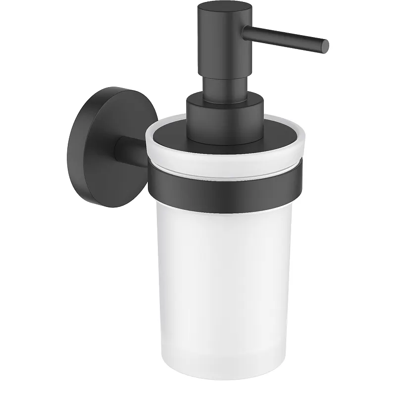 Дозатор для жидкого мыла Schein Kahlo 9138MB.Характеристики: Цвет: черный матовый. Материал: сплав металлов, стекло. Размеры (ШхВхД): 69х163х111 мм. Метод крепления: шурупы. Монтаж: настенный. В комплекте поставки: Дозатор для жидкого мыла. Держатель.