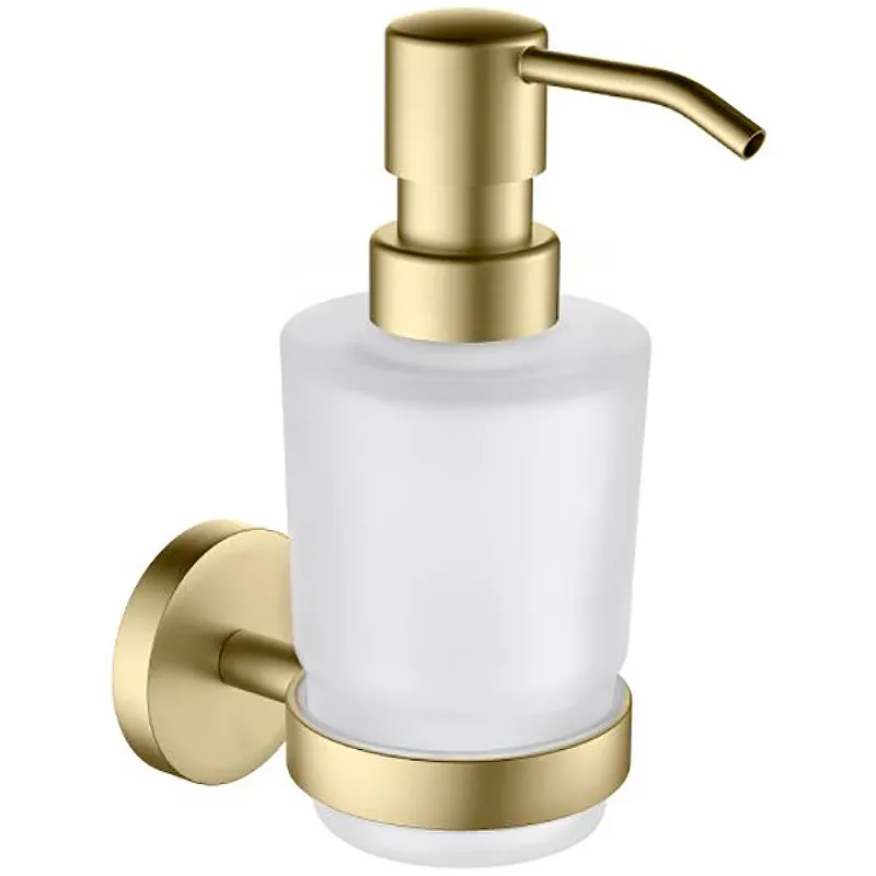 Дозатор для жидкого мыла Timo Saona 13039/17 подвеснойХарактеристики: Габариты (ШхВхД): 6.7x15.8x12.1 см. Материал: латунь класса А, стекло, пластик. Цвет: золото матовое. Монтаж: подвесной. В комплекте поставки: Дозатор стеклянный. Держатель дозатора. Крепежные элементы. Инструкция.