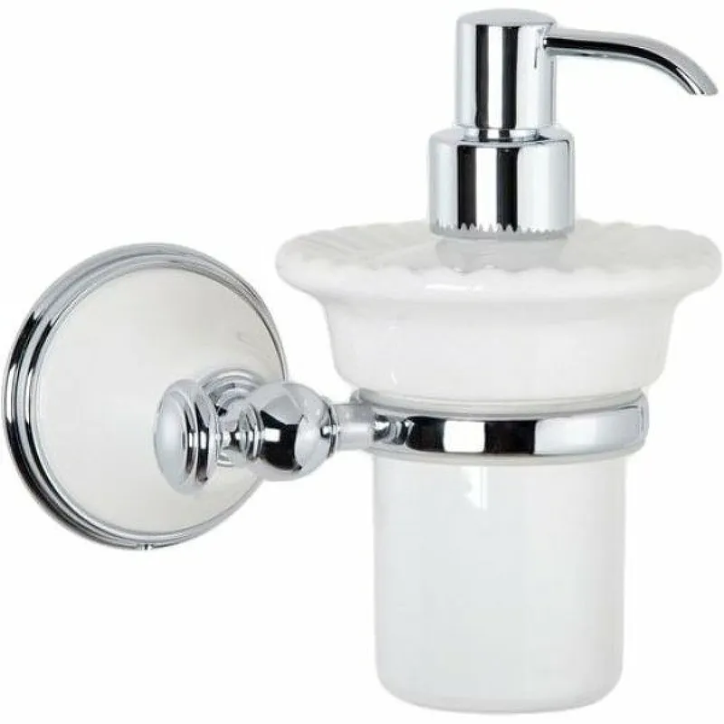 Дозатор для жидкого мыла TW Harmony TWHA108bi/cr.Характеристики: Цвет: белый, хром. Материал: латунь, керамика. Размеры (ШхВхД): 13.5х15.5х12.5 см. Монтаж: настенный. В комплекте поставки: Дозатор для жидкого мыла.