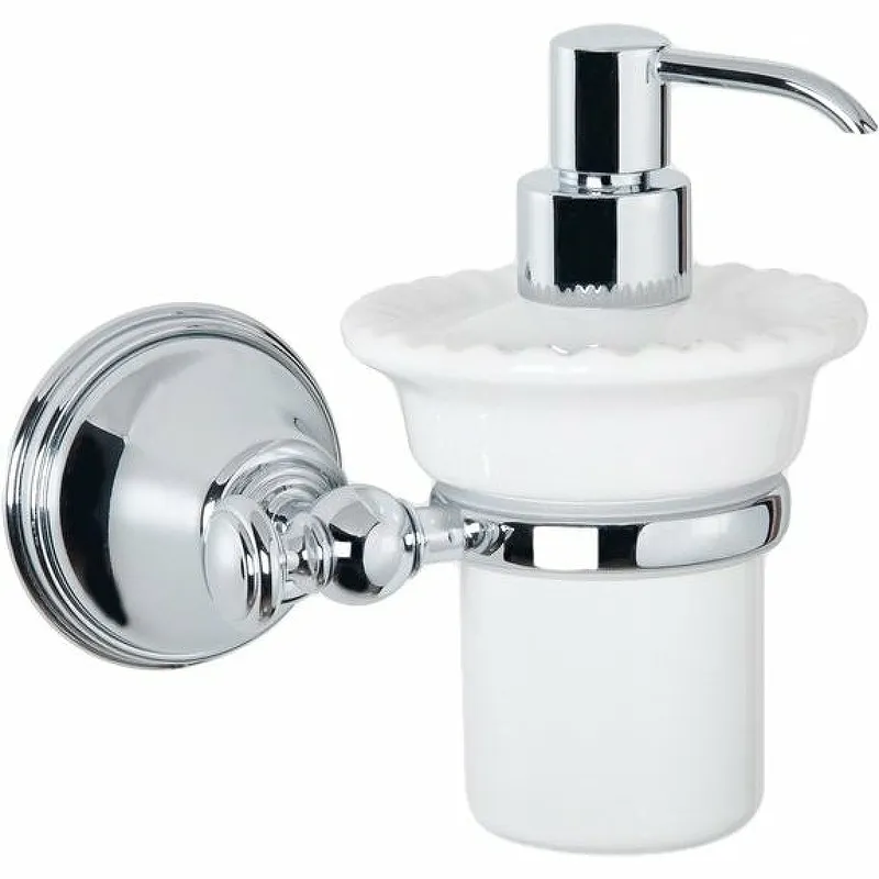 Дозатор для жидкого мыла TW Harmony TWHA108cr.Характеристики: Цвет: хром. Материал: латунь, керамика. Размеры (ШхВхД): 13.5х15.5х12.5 см. Монтаж: настенный. В комплекте поставки: Дозатор для жидкого мыла.