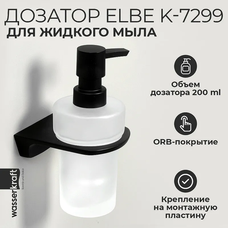 Дозатор для жидкого мыла WasserKRAFT Elbe K-7299 Черный матовый