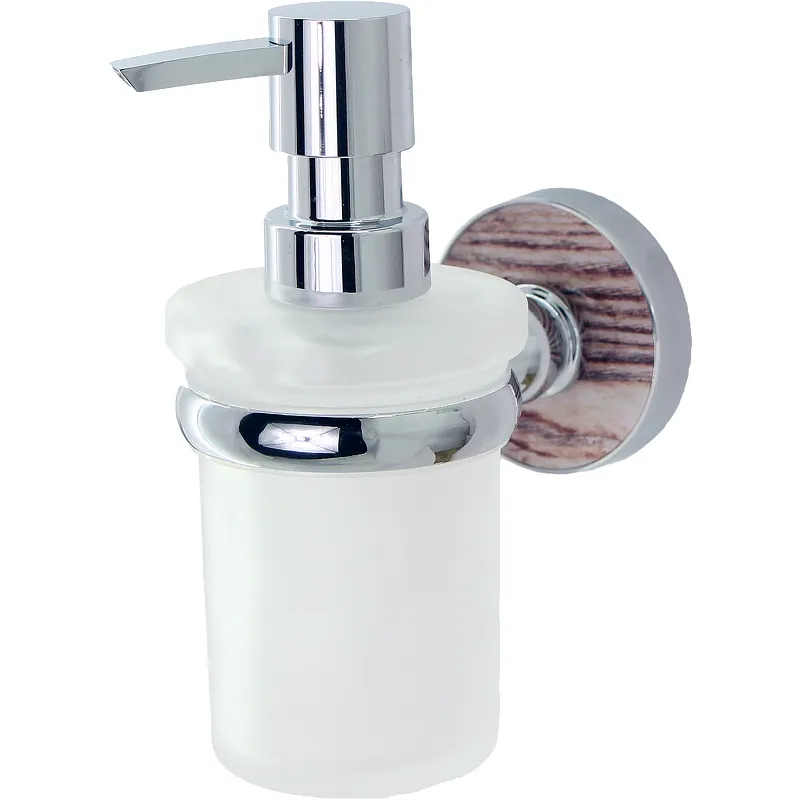 Дозатор для жидкого мыла WasserKRAFT Regen K-6999.Природные мотивы в ванной комнате очень актуальны в последние годы. Обрамление вставки с деревянной текстурой в хромоникелевое покрытие позволит добавить изделие в любой интерьер ванной комнаты.Характеристики: Цвет: хром. Размер (ШхВхД): 7х14,8х11,1 см. Монтаж: настенный. Покрытие: хромоникелевое. Акриловая вставка: обработанное дерево. Материалы: металл, акрил, матовое стекло. Уплотнительные пластиковые кольца. Объем: 170 мл. В комплекте поставки: Дозатор для жидкого мыла.